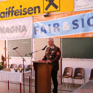 Der Tag begann um 09:00 Uhr mit der jährlichen Festmesse im Feuerwehrhaus. Nach der Messe zeichnete unser Kommando die Bewerbsteilnehmerinnen und -teilnehmer mit den im heurigen Bewerbsjahr verdienten Abzeichen aus: