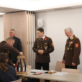 Als besondere Anerkennung für seine langjährige und verdienstvolle Tätigkeit wurde Josef Fuchsberger vom neuen Kommando sowie vom Bürgermeister mit mehreren Geschenken geehrt.